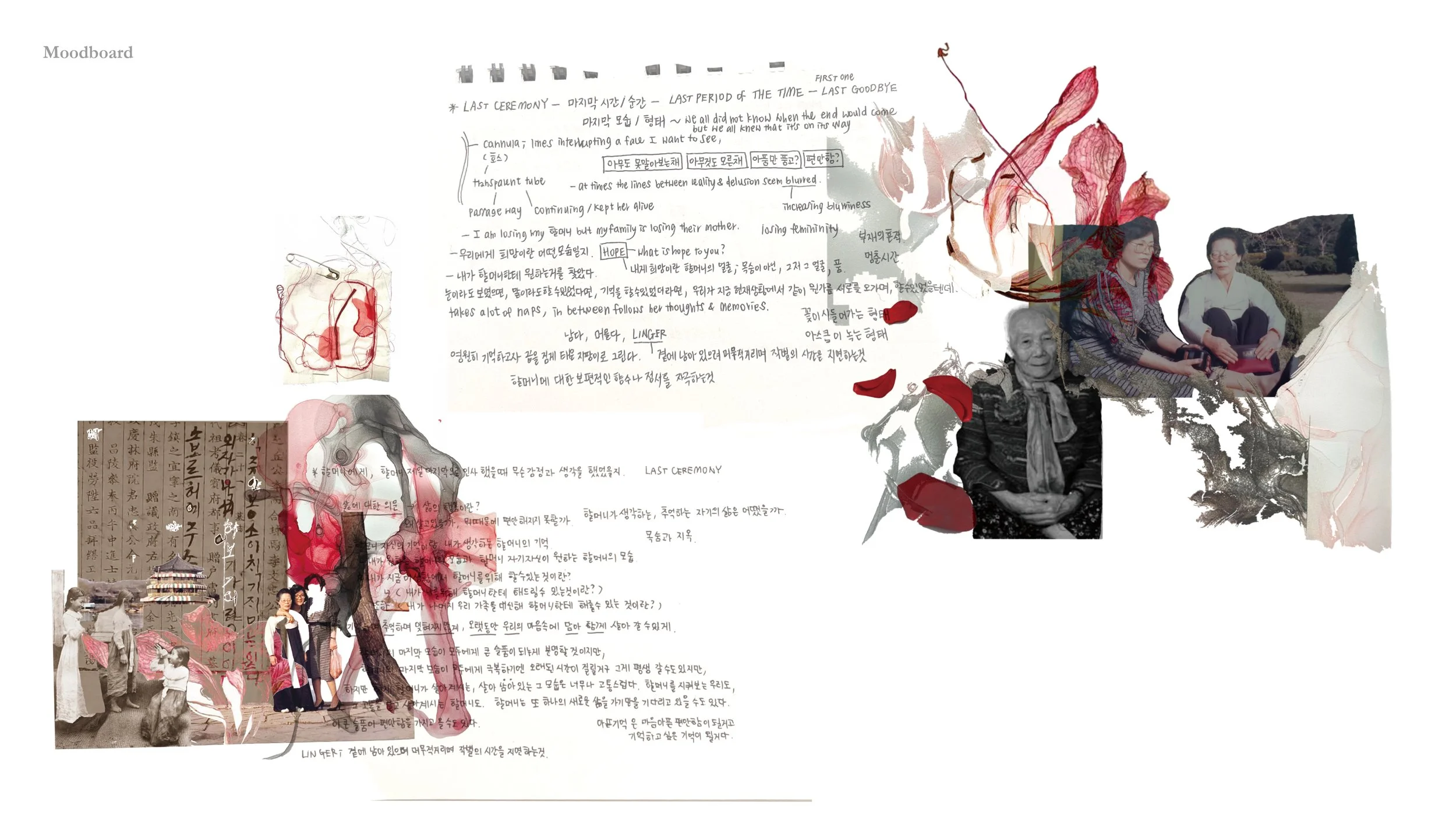 祖母の写真や初期ドローイング、感情的な記憶を組み合わせてムードボードを制作しました。